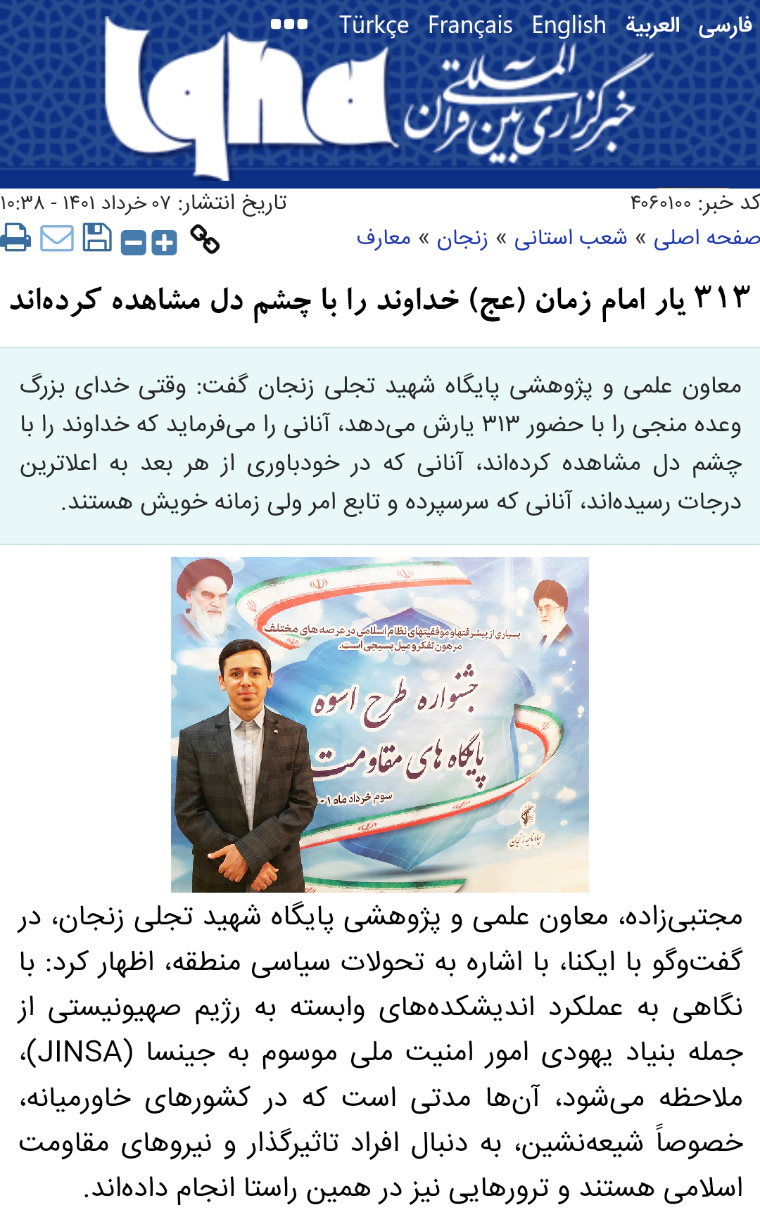 وی در خصوص موضوع زلزله بهویژه در استانهای زلزلهخیزی مانند زنجان،که همواره از اهمیت بالایی برخوردار است باتوجه به وضعیت لرزه خیزی استان زنجان، اظهار کرد: استان زنجان به دلیل قرارگیری در پهنه البرز مرکزی و مجاورت با گسلهای مهمی مانند گسل سلطانیه و گسل شمال زنجان، از مناطق زلزلهخیز کشور محسوب میشود. این منطقه تحت تأثیر رژیم تکتونیکی پیچیدهای قرار دارد که ناشی از همگرایی صفحه عربستان با صفحه اوراسیا است.