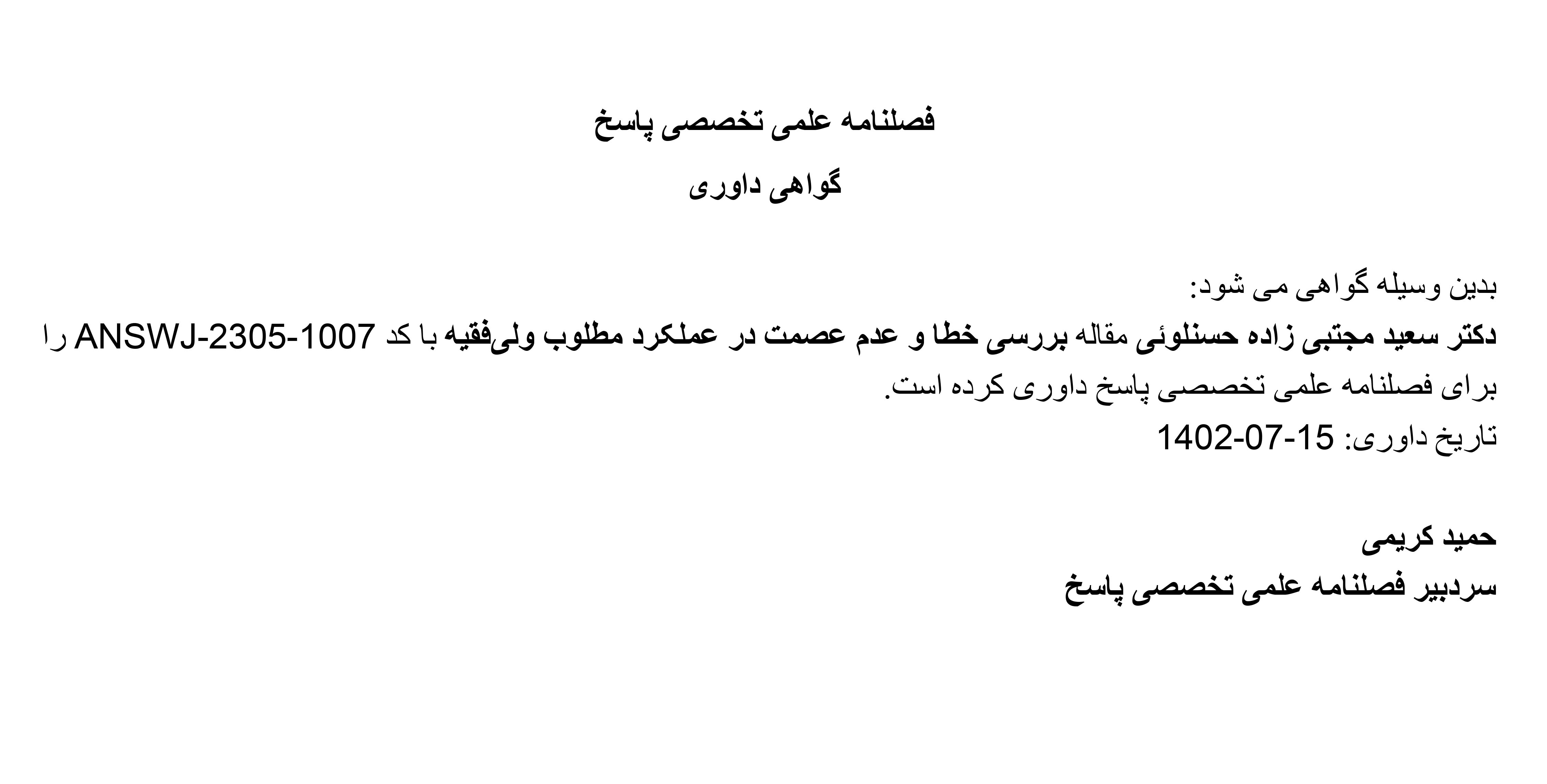 داوری مقاله علمی-پژوهشی در فصلنامه علمی-تخصصی پاسخ به شبهات دینی.